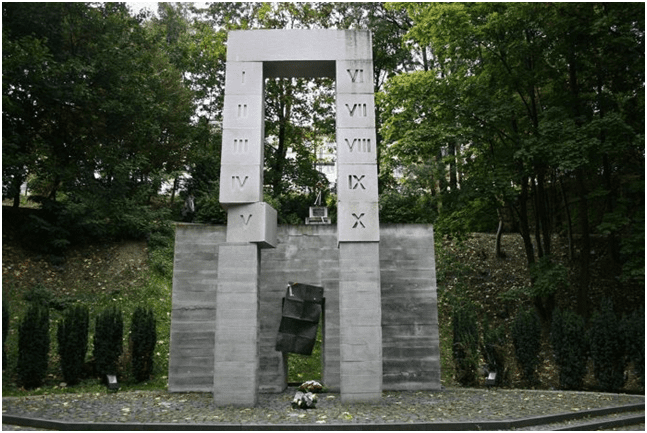 В 2011 г. на месте расстрелов ученых был установлен памятник – арка смонтированная из пяти кубов с изображением римских чисел (10) – согласно заповедям Божьим. Над проектами работали украинские скульпторы Олег Трофименко и Дмитрий Сорокевич, польский художник Александр Слива.