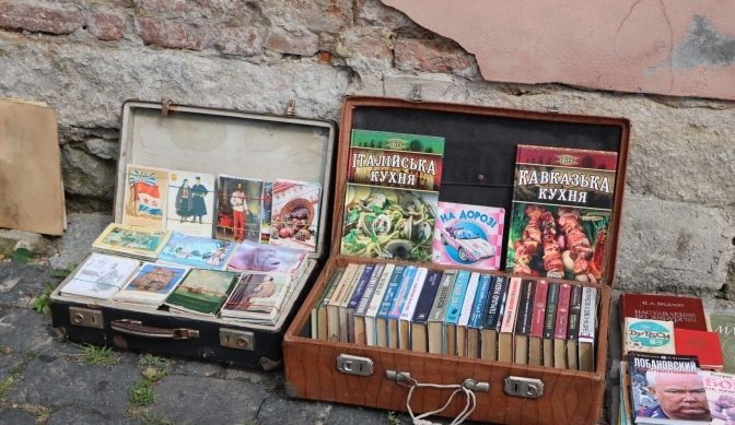 Здесь можно приобрести советские книги или детективы за несколько гривен. Ассортимент книжного блошиного рынка огромен – детективы, историческая литература, медицинские книжки, энциклопедии, мировая классика, украинские произведения и другие. Кроме книг, на рынке можно найти также видео- и аудио-кассеты, марки, значки, прессу и многое другое. Есть большая надежда на то, что рынок не исчезнет.