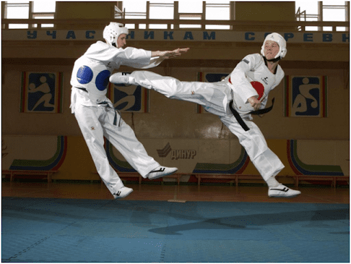 Основателем корейского национального единоборства таэквондо считают корейского генерала Чхве Хон Хи, который имел 2-й дан черного пояса по японскому каратэ (шотокан), много изучал корейские боевые техники, в которых доминировали удары ногами. Так появился новый вид боевых искусств. В таэквондо, как и в карате присутствуют ката, система поясов, спарринги. Таэквондо стало столь популярным, что в 1988 г. его признали олимпийским видом спорта. Визитная карточка таэквондо – зрелищные удары ногами. Часто этот вид спортом называют именно «боксом ногами». Практикуют как обычные удары ногами (прямые, задние, боковые), так и в прыжках, с разворотом корпуса на 180, 360 и даже 540 градусов, чего не встретить в других единоборствах. Спортсмены могут наносить серию ударов ногами в воздухе. На показательных выступлениях таэквондисты (если принимать во внимание выступления известной группы “корейские тигры”) устраивают настоящие цирковые трюки, выполняя разнообразные сальто, колесо без рук, наносят в воздухе целые серии ударов (буквально “бегают в воздухе”). В мире действуют две федерации таэквондо – ITF и WTF. Последняя представлена на олимпийских играх. Между двумя федерациями есть различия в проведении в спаррингах (например, в ITF разрешены удары руками в голову), в проведении соревнований.
