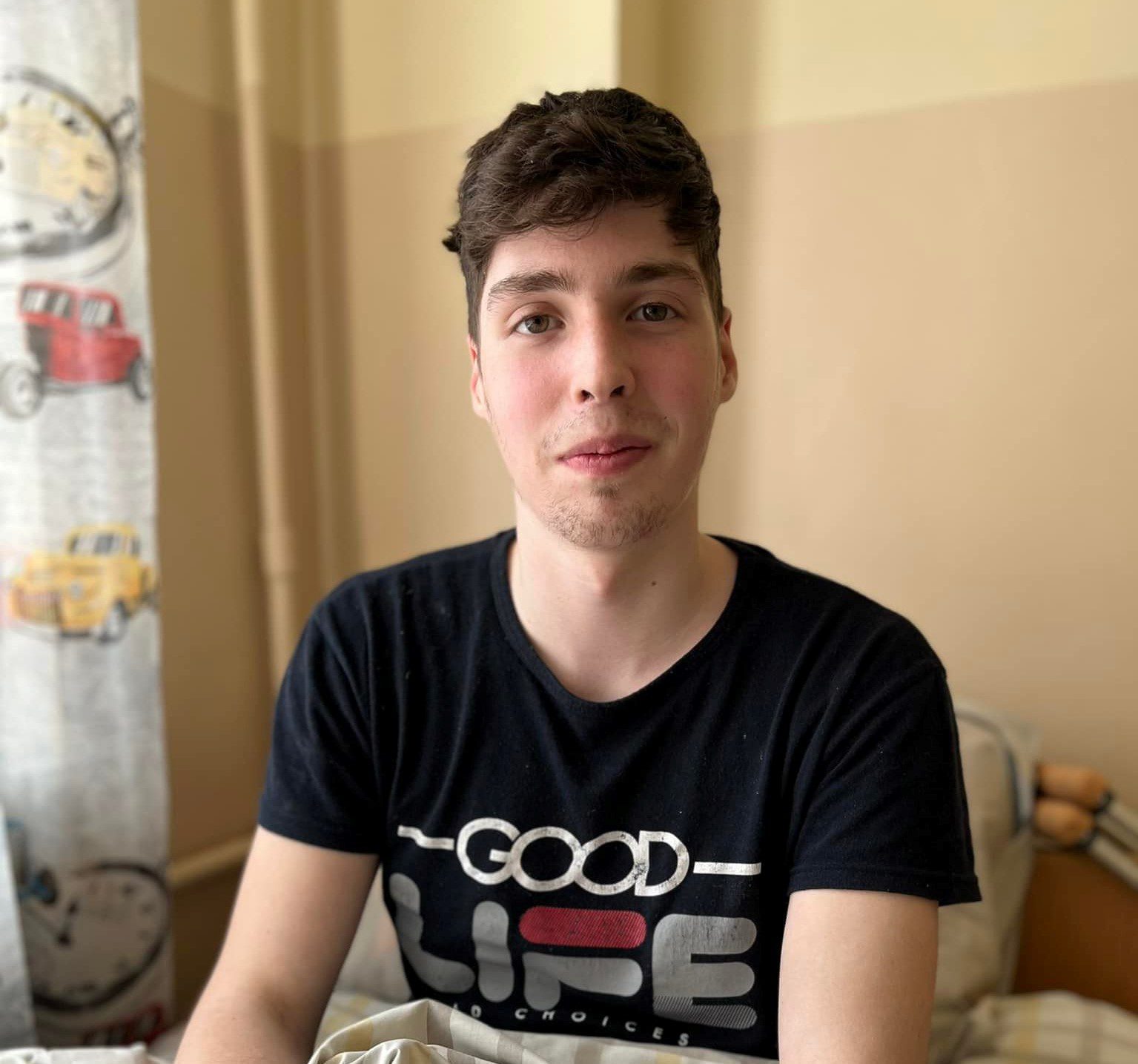 Михаил Стародинов – 18-летний парень, который вместе с группой товарищей организовал небольшой гуманитарный штаб. Они развозили провизию военным и гражданским в горячие точки. 5 апреля волонтеры попали под обстрел. Михаилу обломок раздробил коленный сустав правой ноги. Его прооперировали в Лисичанске и Днепре, а затем эвакуировали во Львов. Далее на ilvivyanyn.