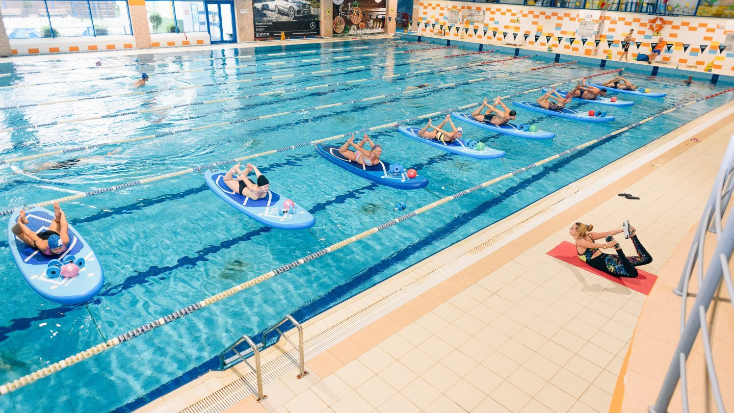 Здесь проходят групповые занятия разного уровня интенсивности с использованием дополнительного специального инвентаря, что делает занятия более интересными и продуктивными. Кроме того, здесь проводят занятия по водному поло, а сама секция является настоящей гордостью спортивного клуба. Воспитанники секции в клубе несколько раз становились Чемпионами Украины по водному поло в разные годы.