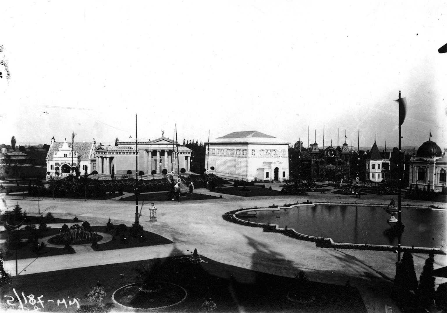 А еще слева в глубине на месте, где теперь спортивные площадки и модульный городок для переселенцев, было сердце выставки — самый большой Промышленный павильон площадью около 6000 м² и высотой 32 м в виде крепости с росписями Антония Попеля и гуцульской керамикой. Там были представлены все тогдашние промышленные изделия Галичины: от резьбы, ковровых и фарфоровых до выставки продукции бумаги, моделей мостов, музыкальных инструментов и церковной утвари.