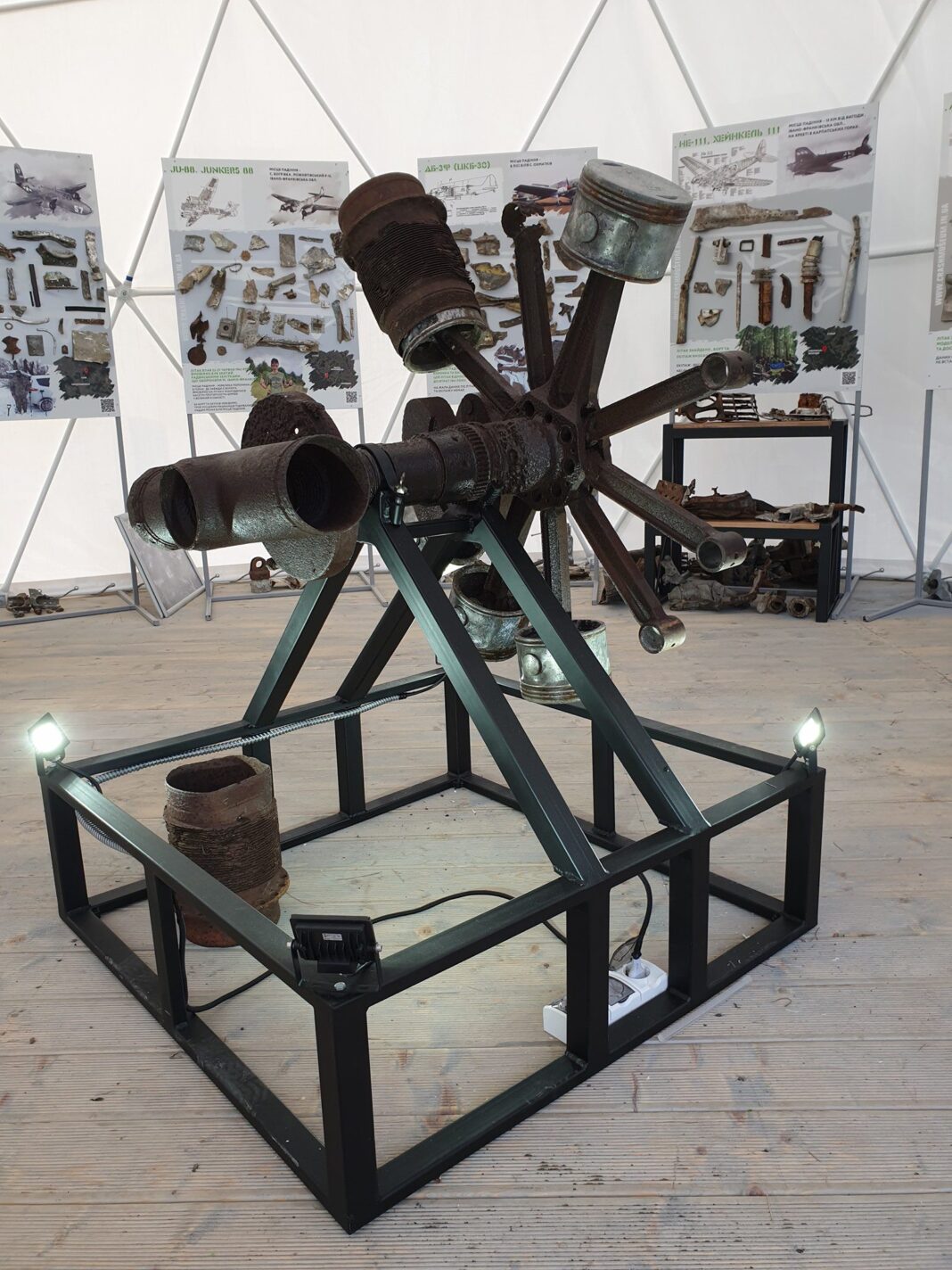 В основном, среди предметов экспозиции представлены остатки немецких и советских самолетов. На выставке можно будет увидеть двигатели, кислородный баллон, элементы парашютной системы и другие предметы, которые были найдены усилиями исследователей. Отдельного внимания среди всех экспонатов заслуживает самолет, который был составлен из найденных запчастей.