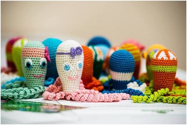 “Вперше такого восьминіжку я побачила в лікарні на Чернігівській, де виходжують передчасно народжених дітей – розповідає Юлія.- Тоді ж загорілась ідеєю виготовлення цих іграшок. Знайшла на ютубі майстер-клас і почала вчитись, хоча до цього зовсім не гачкувала. Приблизно за тиждень чергова спроба вийшла вдалою і вже за два місяці у мене була готова перша партія з десяти восьминіжок”.