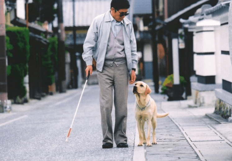 Тростина та натренована собака допомагають незрячим орієнтуватись у просторі