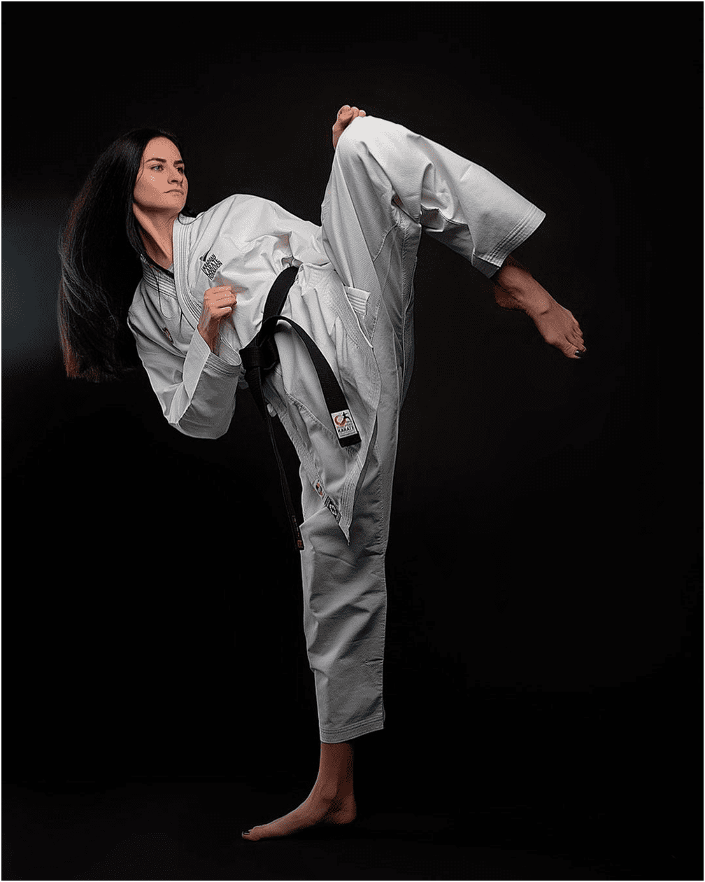 Галина Мельник демонструє удар ногою