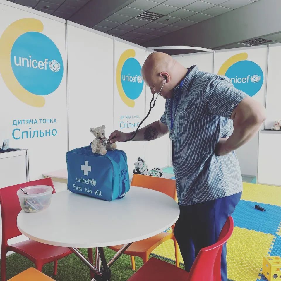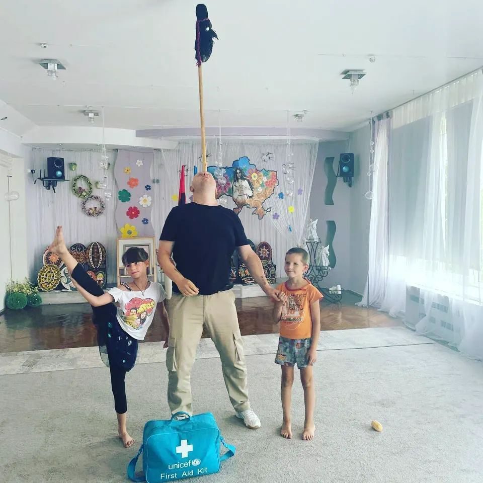 Також львівський силач Олег Скавиш долучився до спільного проєкту UNICEF та освітньої платформи, метою яких була допомога родинам з дітьми, які втекли від окупації та ракет російських загарбників на Львівщину.