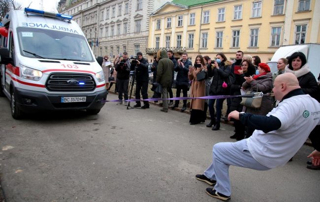 Львівський лікар-силач також тягнув зубами карету швидкої під стінами Верховної Ради у 2017 році, аби «Протягнути» реформу на голосування. За словами організаторів акції реанімобіль символізував пакет законопроектів, необхідних для реалізації медичної реформи. А пан Олег уособлював український народ, що чекає на зміни й готовий докладати надзусиль для їх впровадження.