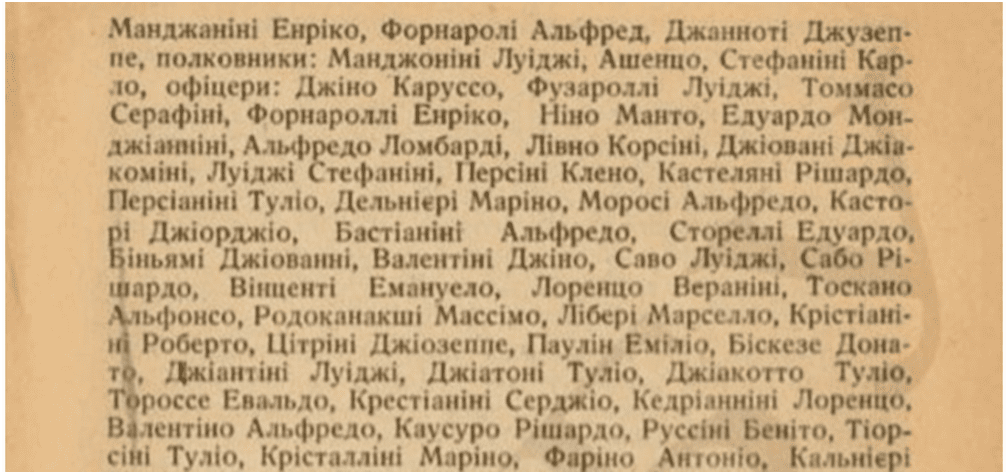 Так ось, згідно інформації, розміщеної у цьому збірнику, нацисти стратили  понад 2000 італійців, у тому числі 45 офіцерів та 5 генералів. У збірнику можна знайти навіть перелік страчених Луїджі Фузароллі, Альфредо Ломбарді, Джино Валентіні та інші.