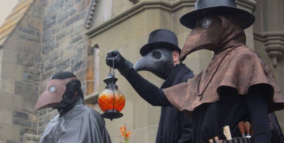 Не оминула ця страшна недуга й Україну. У 15 -16 століттях у Львів кожні 5 – 10 років (у 1480, 1484, 1547, 1572, 1588 роках) люди масово гинули від невідомої для себе хвороби. Проте за всіма показниками це була чума. Через епідемію чуми у Львові у 1547 році навіть закрили на певний час школи. А у 1572 у місті Лева запровадили посаду “морового бургомістра”, який виконував роль головного санітарного лікаря. Цікаво, що по всьому світі чумні лікарі носили спеціальні костюми для власного захисту: довгий плащ, капелюх та маску із дзьобом. Маску виготовляли зі шкіри, а навпроти очей були скельця. В дзьоб клали квіти чи прянощі (трояндові пелюстки, ладан, розмарин тощо), що мали захищати від чумних «міазмів». В дзьобі також робили два невеликі отвори, щоб не задихнутись.